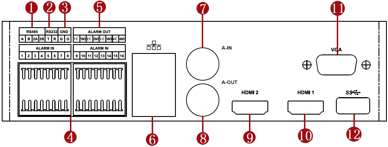 外部I/O 报警输入 16路报警输入